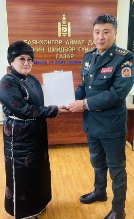 Баянхонгор аймаг дахь Шүүхийн шийдвэр гүйцэтгэх газар нь Шүүхийн шийдвэр гүйцэтгэх байгууллагын алба хаагчийн нийгмийн баталгааг хангах дунд хугацааны хөтөлбөрийн хэрэгжилтийг хангах ажлын хүрээнд Монголын уламжлалт сар шинийн баярыг угтан тус газрын ахмад настнуудад хүндэтгэл үзүүллээ.